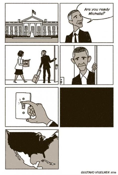 Las reacciones al fin de la Era Obama demuestran cuán querido e influyente ha sido este POTUS durante los últimos ocho años de su vida. Nosotros echaremos de menos sus bailes, sus playlists sorpresa, sus conciertos en la White House y su carisma y entereza a la hora de afrontar problemas, y sobre todo, de ser un líder y un guía espiritual para cientos de norteamericanos, y una inspiración para muchísimas personas alrededor del mundo. Con el trabajo mejor o peor hecho, Barack se despidió por todo lo alto de sus ocho años de mandato, siempre de la mano de su primera dama Michelle Obama, a quien el público también recordará siempre con gratitud. Una única comparación odiosa, pero necesaria: