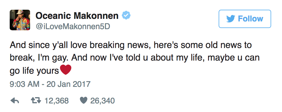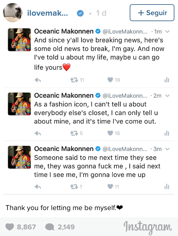 Ahora, la trayectoria de Makonnen atraviesa un momento clave, y es que el artífice de ‘Drink More Water 5’ ha desvelado públicamente su homosexualidad. Lo ha hecho a través de Twitter, lanzando una serie de tweets claros y concisos: