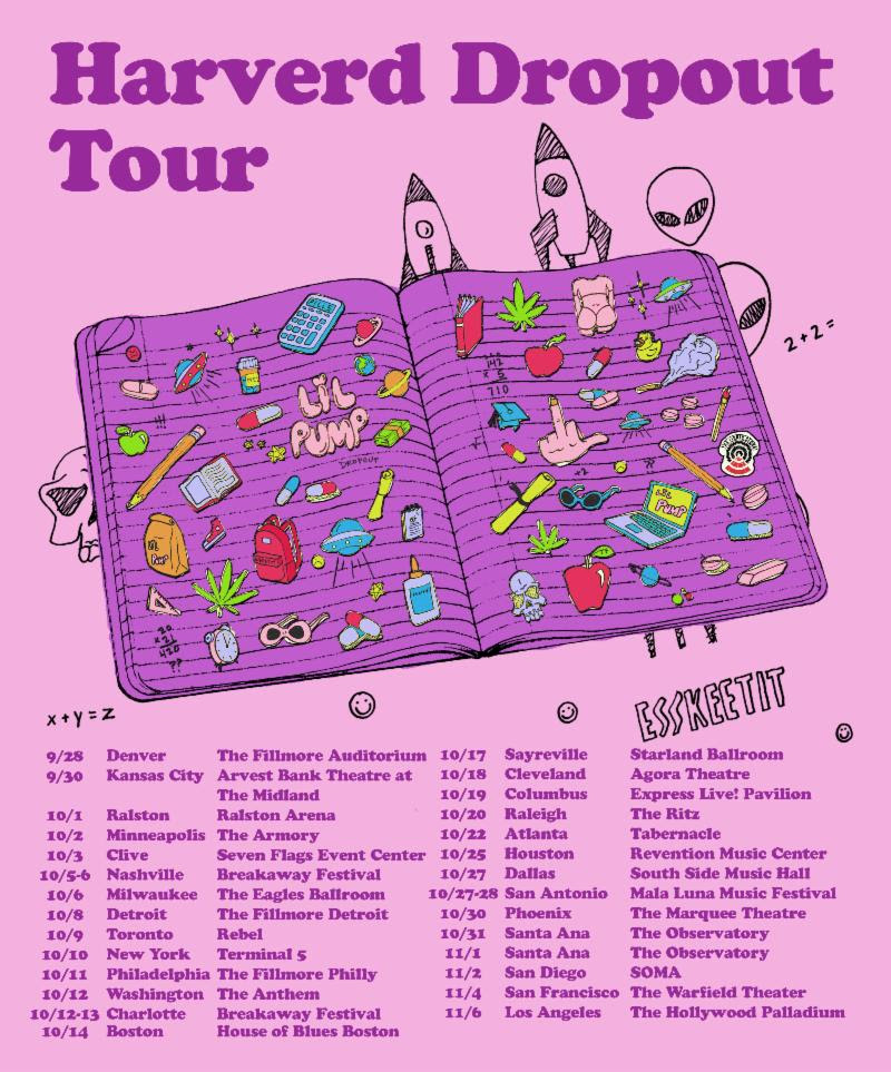 Lo que sí que nos ha sorprendido a todos, es que igualmente Lil Pump ha anunciado las fechas de lo que será su gira en relación al disco, el ‘Harverd Dropout Tour’. Casi 30 fechas repartidas por todo Estados Unidos, de costa a costa. Por ahora habrá que esperar para saber si el mismo se extiende, y si Pump decide subirse a un avión para llevar a cabo algún que otro show en Europa también.