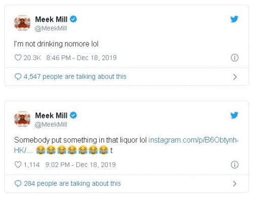 La verdad es que eso de «no vuelvo a beber» lo hemos dicho un montón de veces al pensar en el ridículo que hemos hecho de fiesta, así que entendemos perfectamente cómo se tiene que sentir Meek Mill ahora que todos somos testigos de su melopea.