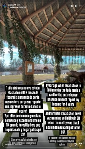 6ix9ine habló en Instagram para explicar que su permanencia allí se debía a problemas para volver a los Estados Unidos, lo que contribuyó al malentendido con el IRS. Sin embargo, los problemas legales del del pelo de colores no terminan aquí. Además de sus complicaciones fiscales, el artista está lidiando con una demanda por agresión presentada por Alexis Salaberrios, una bailarina que lo acusa de haberla golpeado con una botella de champán. Este caso resultó en un fallo de casi 10 millones de dólares en su contra, que es lo que ha llevado a que confisquen y vendan sus cosas como parte del cumplimiento de la sentencia.
