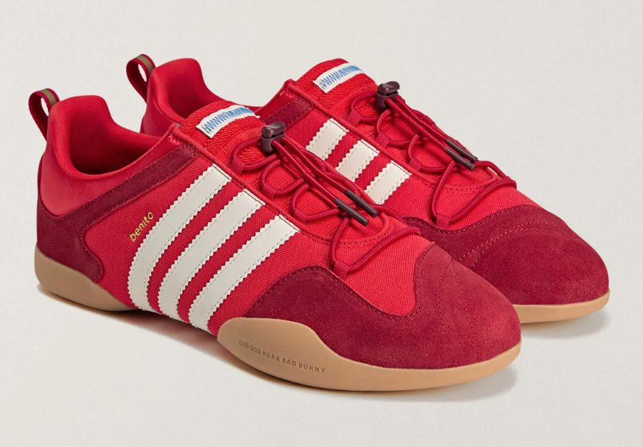 El nombre «Flamboyan» hace referencia al árbol flamboyán, conocido por su intenso color rojo y profundamente vinculado al paisaje y la identidad cultural de Puerto Rico. Como ya es habitual en las colaboraciones de Bad Bunny con adidas, el calzado va más allá de la estética y funciona también como una extensión de su arte y persona.