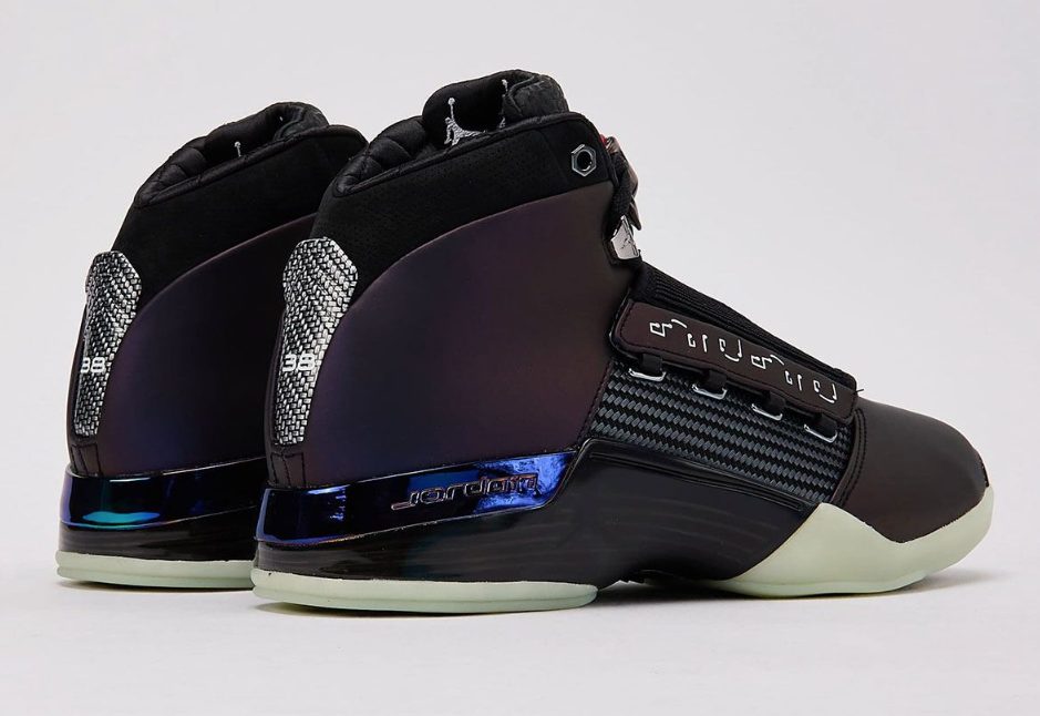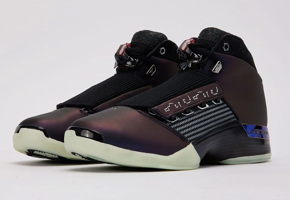 Zach reinterpretó la silueta de la Air Jordan 17 incorporando elementos de lujo mecánico y automovilismo, alejándose totalmente de lo retro. La zapatilla presenta un upper iridiscente púrpura que cambia entre tonos burdeos y morados claro según la luz, generando un efecto parecido al que tiene la gasolina derramada en el asfalto.