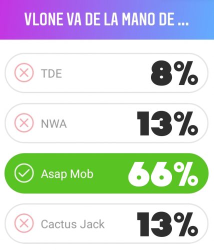 Otra bastante fácil, no por su máximo exponente A$AP Bari sino también porque gran parte de A$AP Mob ha colaborado o lucido sus prendas. El 66% disteis con ello. Great!