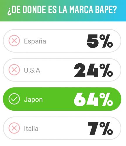 Fundada por Tomoaki Nagao en Harajuku (Tokio) hace 27 años. BAPE se ha convertido en una referencia dentro del streetwear y el 64% de vosotros habéis acertado. Japón es la respuesta correcta.
