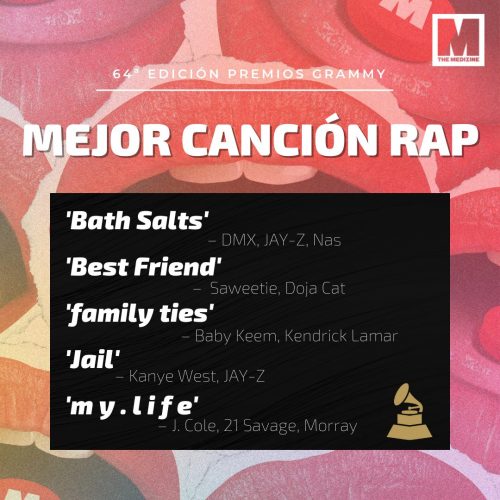 Por si no fuese poco ya bastante llamativo, mencionar que JAY-Z no ha lanzado nuevos trabajos musicales este año, con lo que sus nominaciones que han acabado dándole el récord corresponden a las colaboraciones con DMX (en ‘Bath Salt’) y con Kanye West (en ‘Jail’).