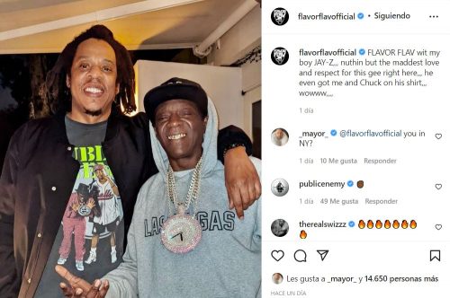 Tanto es así que recientemente Flavor Flav publicaba en sus redes sociales una foto junto a JAY-Z, en la que, para redondear la escena, el de ‘The Blueprint’ llevaba una camiseta de Public Enemy. No sabemos si fue casualidad o no, pero todo hace que la imagen sea absolutamente épica.