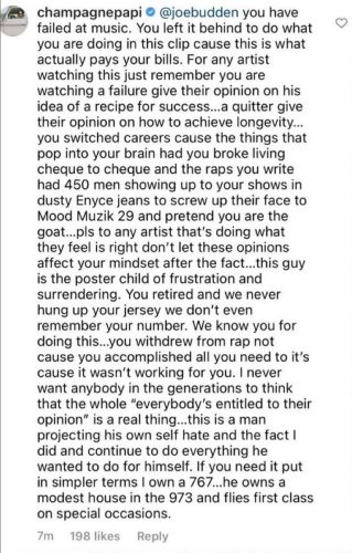 Sin embargo, si Budden creía que Drake iba a quedarse callado y no responder estaba en lo equivocado. El canadiense contestó lo siguiente en las redes sociales: