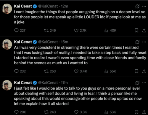 Kai Cenat habla abiertamente sobre salud mental