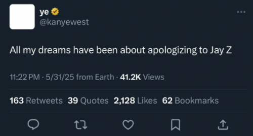Aunque el mensaje fue eliminado poco después, los pantallazos existen para algo, y ahí es donde podemos leer las palabras de Kanye: «Todos mis sueños han sido sobre pedirle perdón a JAY-Z».