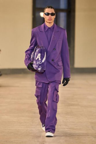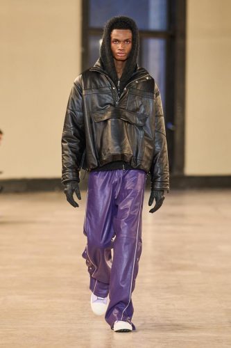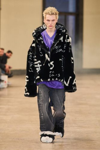Frente a múltiples figuras de distintos lugares del mundo presentes durante este evento, Kodack Black presentó una cápsula de diez piezas inspirada en atuendos nostálgicos, música y sus líricas personales. El nativo de Florida interpretó su canción ‘Super Gremlin’ en la pasarela mientras lucía un abrigo de piel sintética color morado pintado a mano con las letras de sus canciones.
