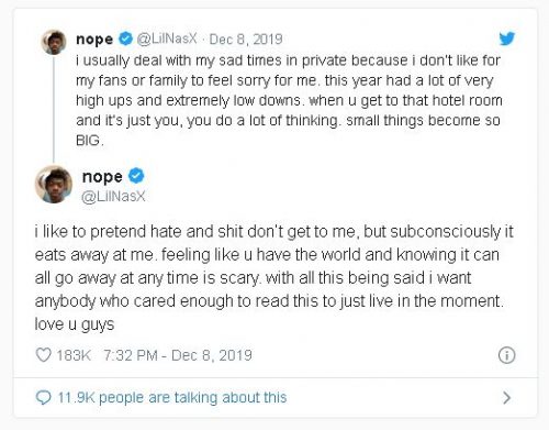 Lil Nas tiene solo 20 años y su fama ha sido prácticamente instantánea, así que es normal que su salud mental se haya resentido bastante.