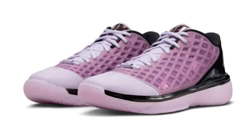 El colorway hace referencia al Kia Forum en Inglewood, especialmente a las luces rosas que iluminan el exterior del recinto por la noche. Ese detalle se traduce en una combinación de negro y rosa que domina la parte superior de la zapatilla.