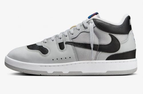Las Nike Mac Attack x Travis Scott presentan el gris como color predominante, con una suela de goma que proporciona tracción y durabilidad, mientras que la parte superior de malla negra y gris ofrece transpirabilidad y estilo. Además, las superposiciones prominentes de cuero gris y negro agregan un toque de elegancia a este diseño único.