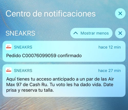 No obstante, si ya sois usuarios de la famosa app de Nike, podéis activar notificación para que os avise del lanzamiento de vuestro modelo o modelos favoritos cuando se habilite su opción a compra.