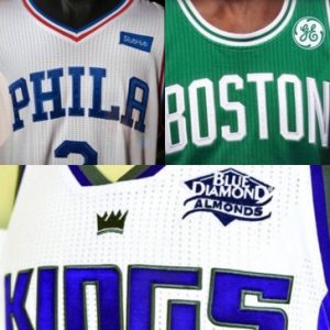 Philadelphia 76ers y Sacramento Kings fueron los primeros en encontrar patrocinador –StubHub y Blue Diamond Almonds respectivamente, con contratos de 5 millones de dólares anuales– y recientemente lo han hecho los Boston Celtics con General Electrics, a cambio de una cantidad de 7 millones por cada año que dure el contrato.