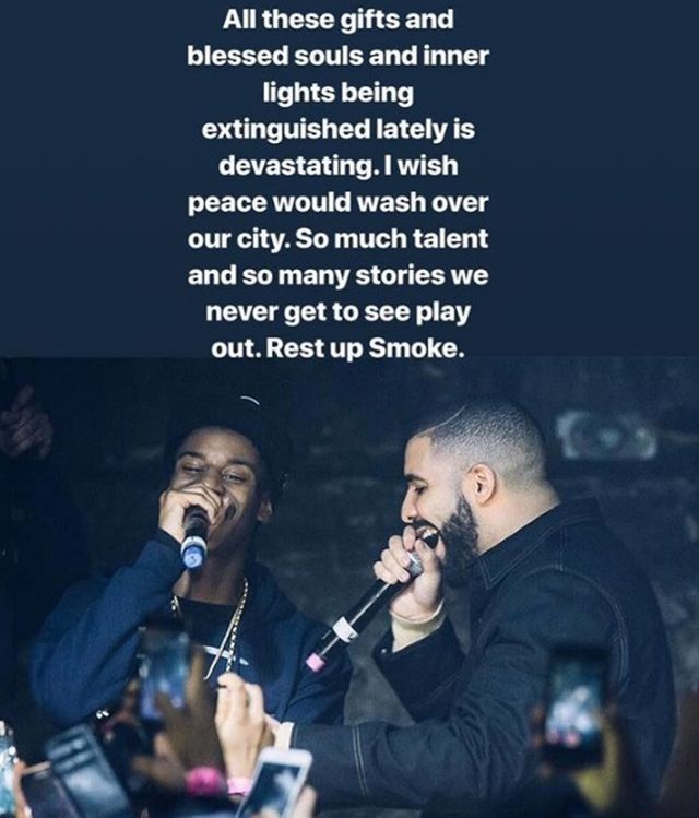 Su compañero Mustafa, The Poet ha sido el encargado de anunciar que Smoke había perdido la vida después del tiroteo. Posteriormente, otros allegados del cantante, como el propio Drake o Giggs, se despidieron del artista a través de sus respectivos perfiles en las redes sociales: