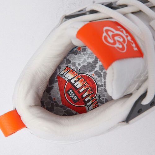 Su unión con Karl Kani nos da resultados como estas sneakers blancas con detalles grises y ese naranja tan asociado con Snipes.