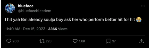 https://twitter.com/nojumper/status/1735758078140915870?ref_src=twsrc%5Etfw%7Ctwcamp%5Etweetembed%7Ctwterm%5E1735758078140915870%7Ctwgr%5Eb48de8ad335c9c306002d118c8e662dd1f7d0bd1%7Ctwcon%5Es1_&ref_url=https%3A%2F%2Fwww.complex.com%2Fmusic%2Fa%2Fjaelaniturnerwilliams%2Fsoulja-boy-slams-blueface-saying-hed-win-in-verzuz-face-off