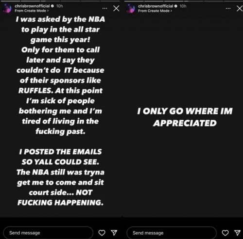 Este debate se intensificó después de que Chris Brown afirmara que fue desinvitado a jugar en el partido de celebridades del NBA All-Star 2024 debido a preocupaciones de los patrocinadores. Brown, claramente frustrado, expresó sus sentimientos en Instagram, afirmando que está «cansado de vivir en el pasado» y que solo irá a los lugares donde se sienta apreciado.