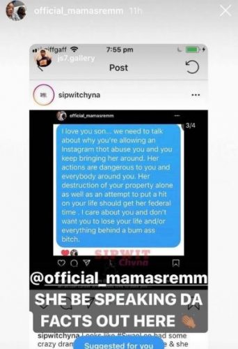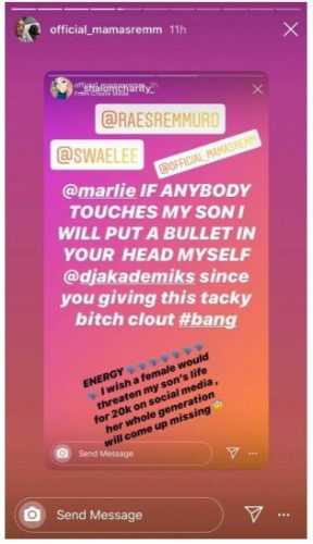 Así que a la madre de Swae Lee no le quedó otra que intervenir en toda esta situación descontrolada y amenazar a la que había sido su nuera hasta la fecha.