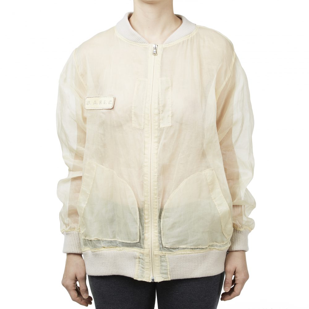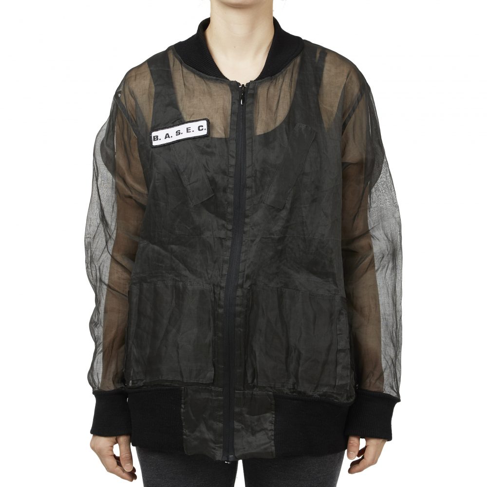 El modelo de tela translúcida está disponible también en negro. Sabemos lo que estás pensando: «pero si esa bomber es muy fina, ¿cómo abrigará del frío». No abriga.