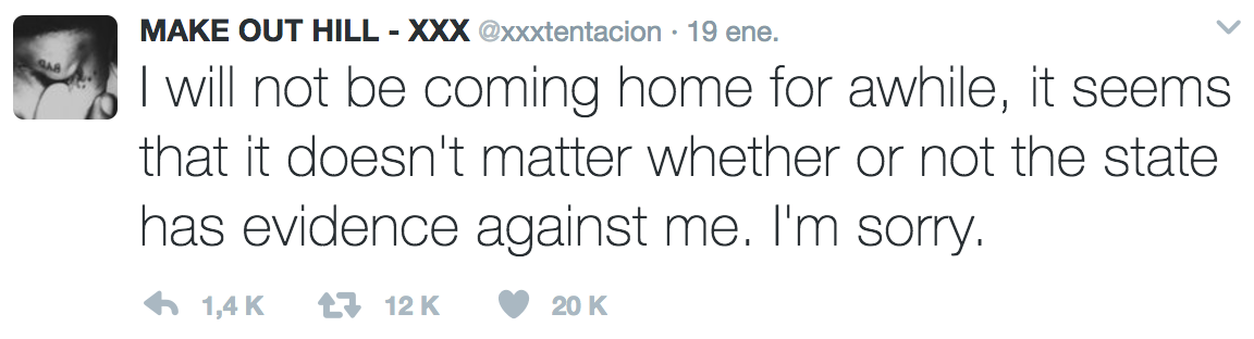Tras lo ocurrido, XXXTentación publicó el siguiente tweet: