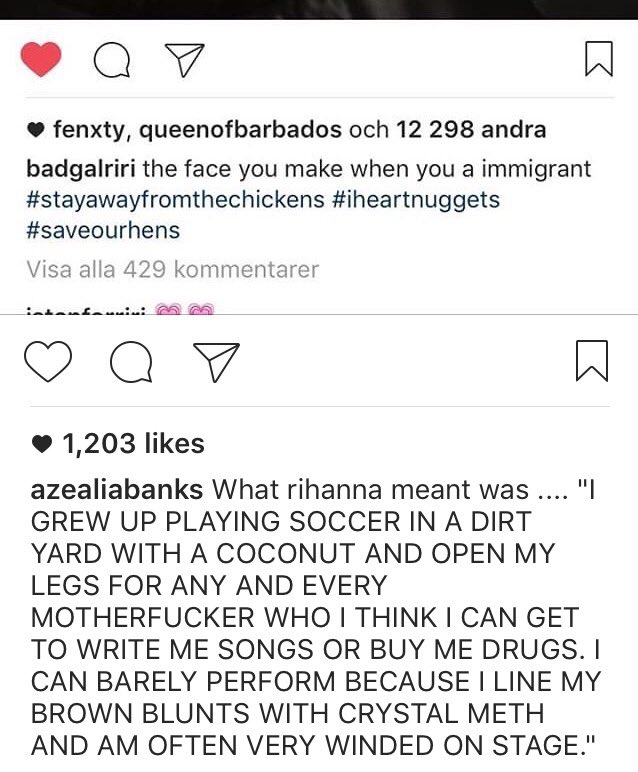 Este y otros comentarios xenófobos de la cantante han provocado un gran revuelo en las redes, que Rihanna ha logrado acrecentar gracias a una fotografía a modo de reacción a los posts de Banks: