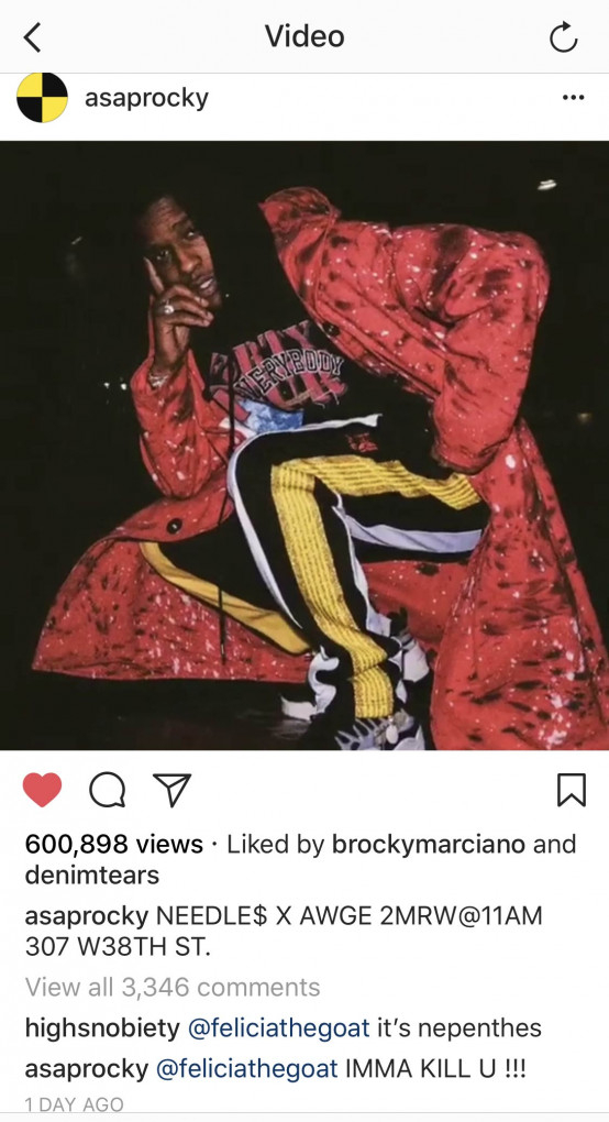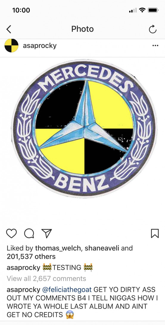 Todo comenzó cuando Rocky subió una foto dándole bombo a lo que está preparando, y Tyler le contestó en la sección de comentarios exclamando: «a nadie le importa». Es por es que el de A$AP saltó directamente a su cuello tal que así:
